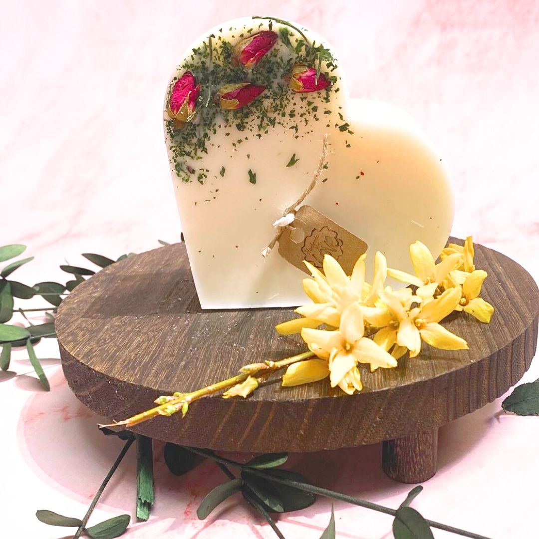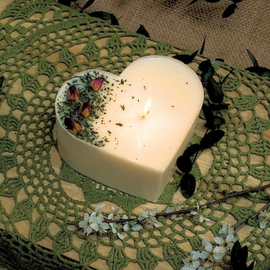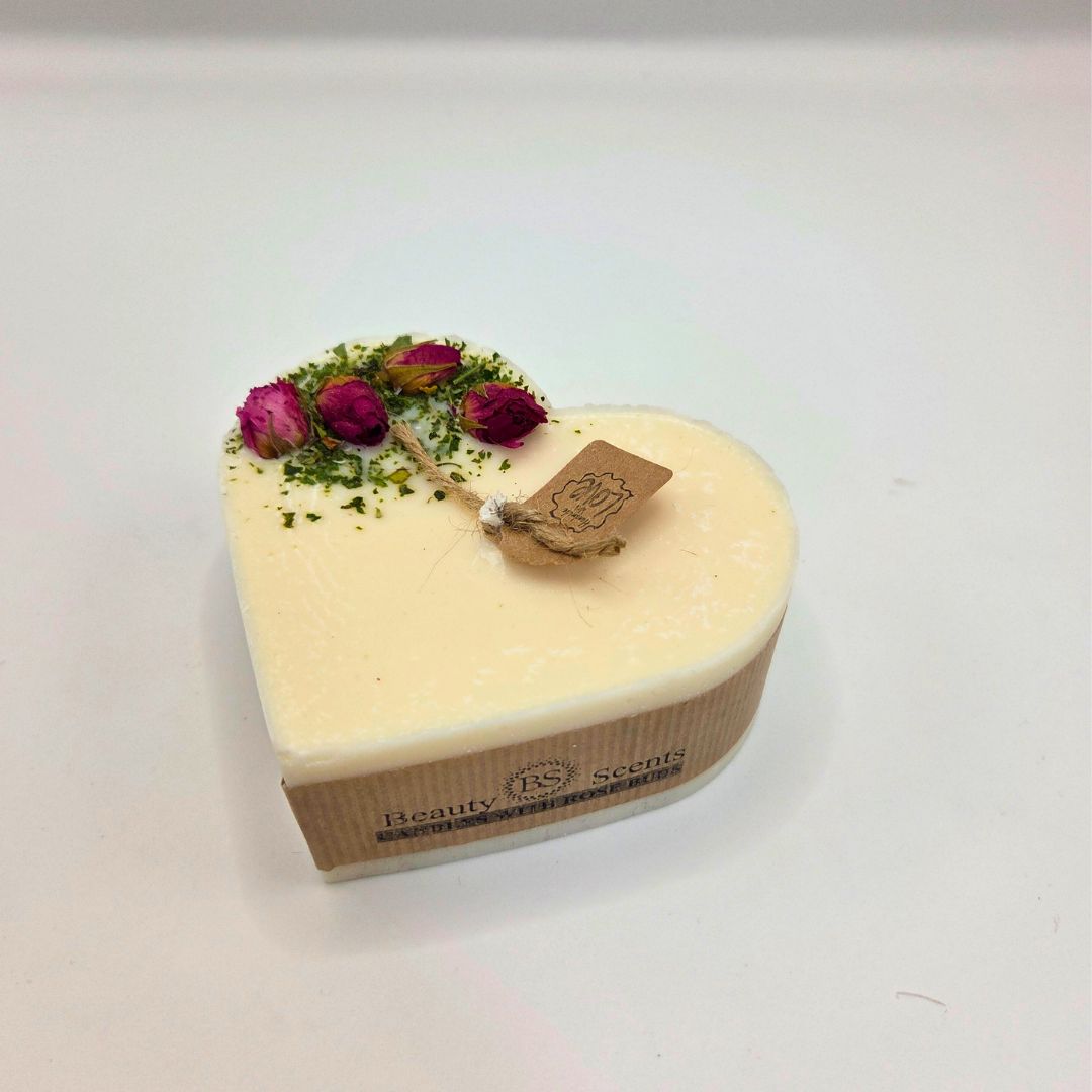 Large Heart Scented Candle with Rose Buds