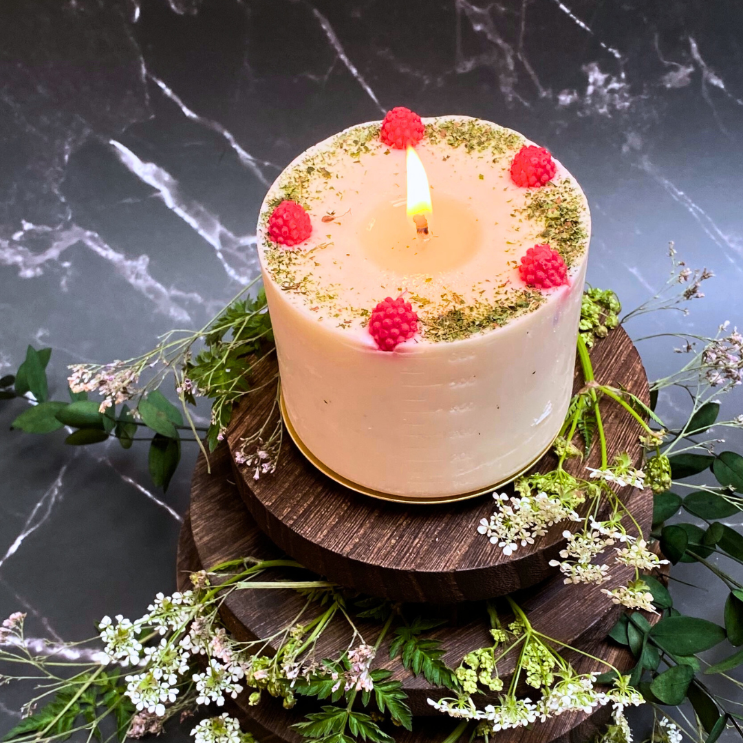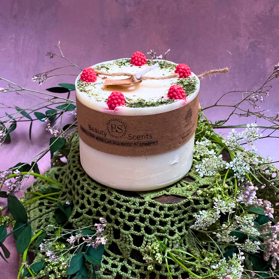 Make a bold statement with our Large Raspberry Candle, featuring stunning red wax berry decorations that transform any room into a fruity paradise. This substantial pillar candle delivers exceptional fragrance throw and extended burn time.