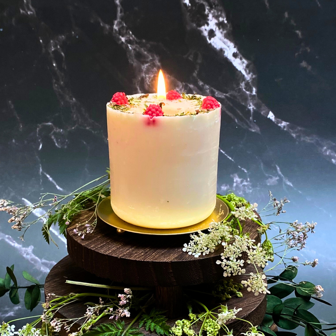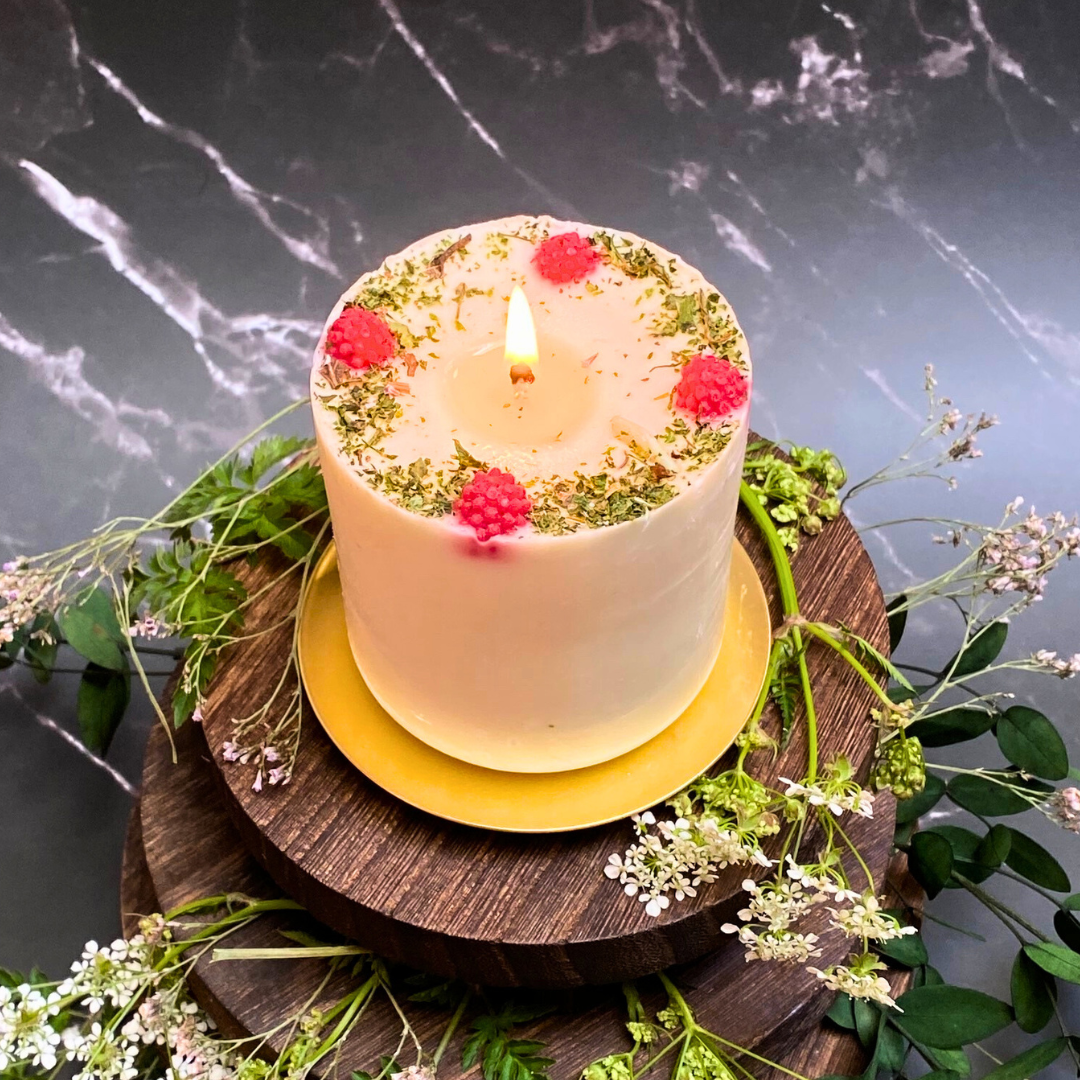 Find the perfect balance of size and fragrance with our Medium Raspberry Candle. This versatile candle features stunning red wax berry decorations, offering the ideal solution for medium-sized spaces that need a burst of fruity energy.